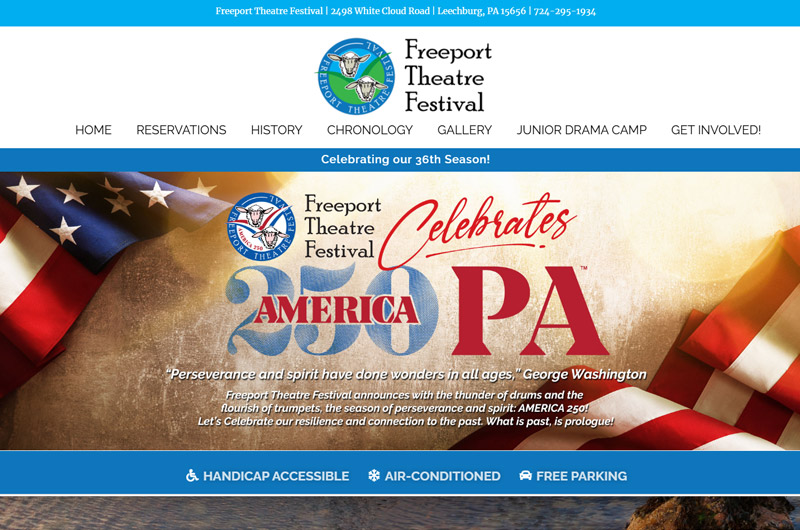 Freeport Theatre Festival is a theatre that was founded in 1989 by Rennick and Marushka Steele. It is based in the rural Allegheny Kiski Valley at the northernmost tip of the Laurel Highlands. CategoriesGraphic DesignLogo DesignPrintingWeb Design Visit Website Previous Portfolio Next Portfolio